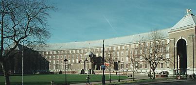 It is a grade II listed building. The concrete frame is clad with very wide, thin bricks, with Portland stone dressings and a leaded hipped roof in a Neo-Georgian style. The steep and high roof with gilded unicorns to the corners of the end blocks. The foundation stone for The Council House was laid in 1938 and the building was opened by the Queen on 17/4/1956. The ceremonial entrance overlooks the moat and leads into the reception hall which is lined with local Doulting stone and paved with black and white Italian marble. It also features a blue and gold wall clock, encircled by the signs of the zodiac and equipped with its own wind indicator. The Conference Hall is the largest room in the building. The names of all Mayors and Lord Mayors of Bristol since 1216 are cut into the stone walls. The walls of the Lord Mayor’s Reception Room are panelled in English Walnut and there is a colourful frieze displaying the heraldry of the Bristol trade guilds, and, in gold leaf, the names of famous Bristolians. Reference: The Council House 1935-1952. “An important work by the most celebrated civic architect of the first half of the C20.” (The Buildings of England: Pevsner N: North Somerset and Bristol: London: 1958-: 413).