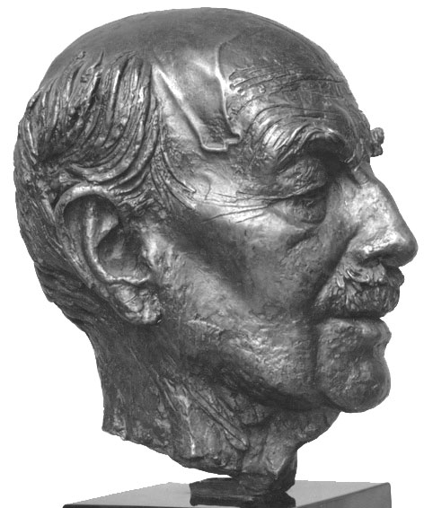 Reference: National Portrait Gallery Catalogue page 20 ref 4601. Inscription: "Clement Attlee 1883-1967, leader of the Labour Party (1935-55); served in the War Cabinet under Churchill (1940-5) & was Deputy Prime Minister (1942-5); defeated Churchill at the polls in the landslide Labour victory of 1945, bringing to power the first Labour government able to implement the policies of the welfare state. By David McFall (1919-88) Bronze signed 1965"