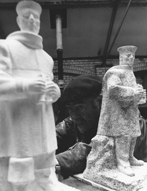 This plaster maquette (scale 1”:1foot) was commissioned by the Commonwealth War Graves Commission as a design for a colossal granite memorial at Liverpool Docks commemorating the loss of all members of a mission in 1942. The maquette was approved but the project was cancelled in 1975 by the Commonwealth War Graves Commission for funding reasons.