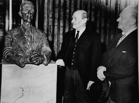 Sir Jacob Epstein. Noted American sculptor who spent many of his later years in England. He was one of the leading sculptors of the 20th century, creating many notable pieces. In 1953 he was commissioned to make a statue of Sir Stafford Cripps (1889-1952), who held many Cabinet posts including Chancellor of the Exchequer (1947-1950). When completed, the statue was installed in the Crypt of St. Paul's Cathedral. The words inscribed are those of Cripps.